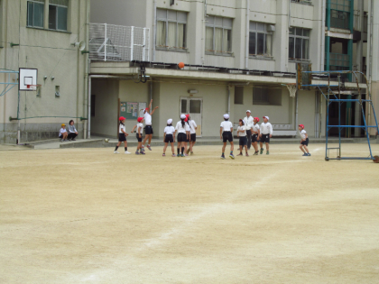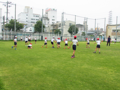 今年のクラブは全部で10こあります。その中で、外で運動をするクラブが3つあります。ボール運動クラブとバスケットボールクラブ、サッカークラブです。お天気の時は、運動場と芝生の北グラウンドを使って活動しています。