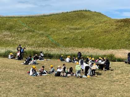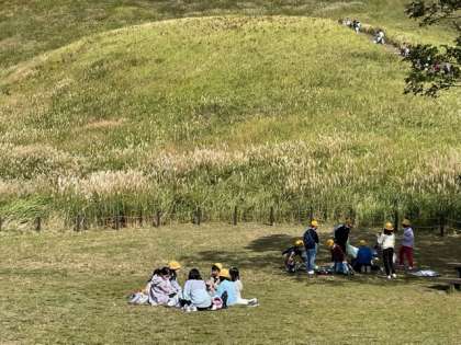 秋の太陽がまぶしく、思ったよりも暖かいです。
