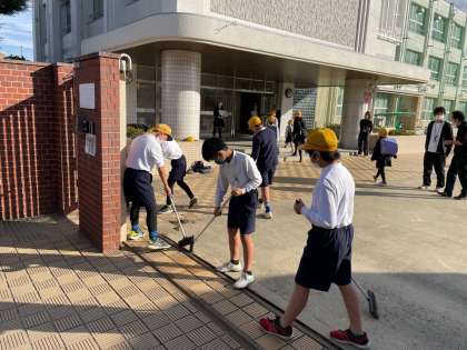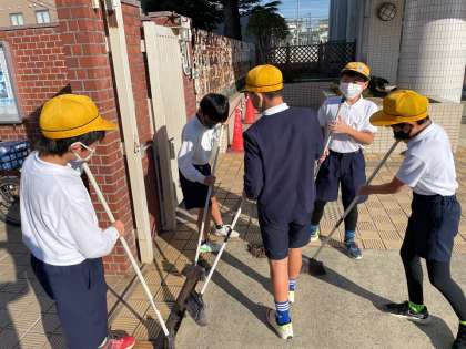 今日は正門の掃除です。掃除の仕方も自分たちで考え、一生懸命取り組んでいました。