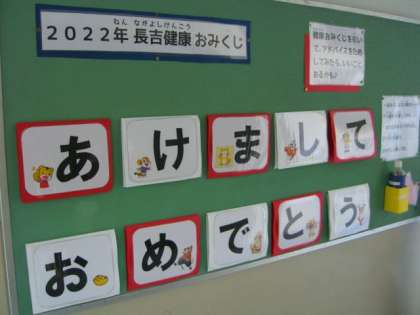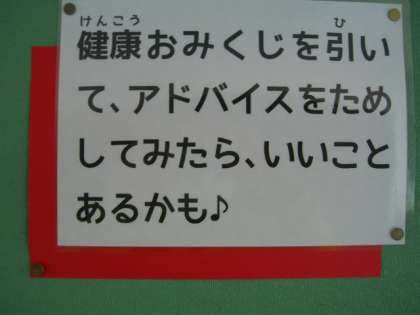 保健室前の掲示板に、「長吉健康おみくじ」が出現しました。