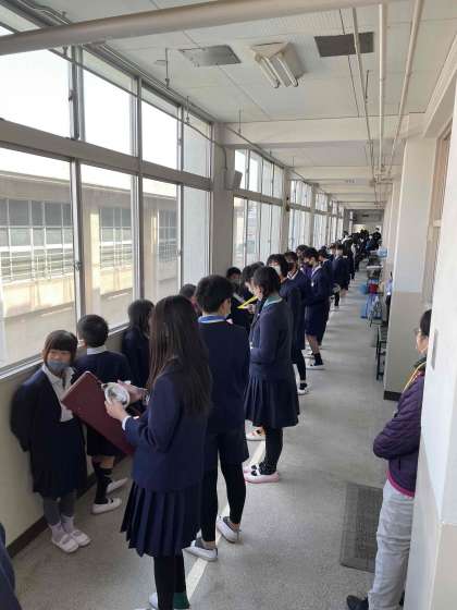 そして最後に、講堂から教室へ戻るまでに、1年生から5年生まで花道を作って見送りました。1年生からは手作りのメダルがプレゼントされていました。