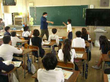 ワンツースリー!と英語を使いながら楽しそうにじゃんけんしてます。