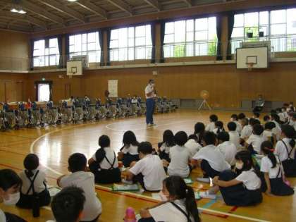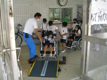7月12日(火)に大阪市立心身障がい者リハビリテーションセンターの方々に来ていただき、車いす体験を行いました。
