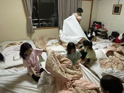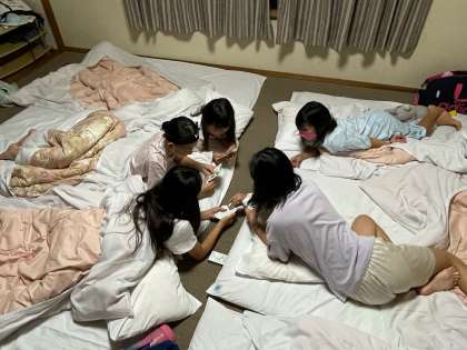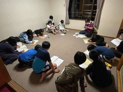 各部屋で就寝準備をしてたり、トランプをしてたり…林間学習の楽しいひと時です。