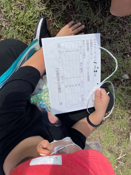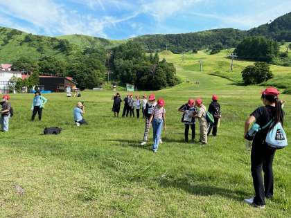 ネイチャーゲームがスタートしました。活動班ごとに写真を撮ってもらって出発します。