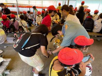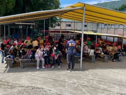 ネイチャーゲームは何とか各班帰ってきました。ゴールした班から日陰で少し休憩です。