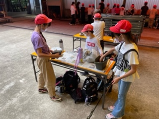ごちそうさまの後は班で協力して後片付けです。みんなで協力してやってます。