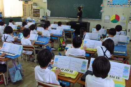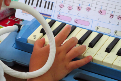 1年生の音楽の学習では、主に鍵盤ハーモニカを使います。少しずつ音階も増えてきて演奏できる曲も多くなってきているようです。