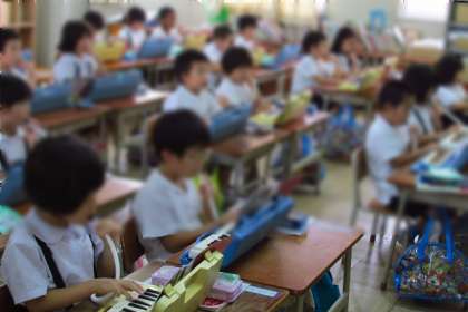 鍵盤を押さえる指の動きも大事ですが、「トゥー、トゥー」と吹くタンギングという技法も後のリコーダー演奏につながる大事なこととも言われていて、子どもたちは頑張っています。お家でも練習の様子を聞いてあげてみてください。