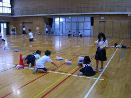 扇風機フル回転の中、体育館で思い切り走らせました!