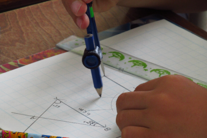 算数では三角形の作図の学習をしていました。