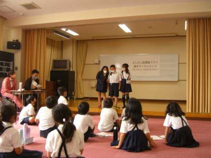 発表が終わるたびに、プロの芸人から、「声が出てたね!」「長いセリフよく覚えたね!」「身が軽いね!」など褒められ、子どもたちもうれしそうにしていました。