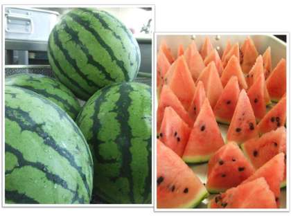 1つのすいかをきっちり64等分にして、クラスの人数分ずつバットに並べていきます。
