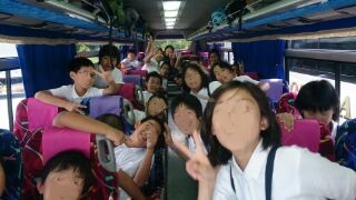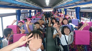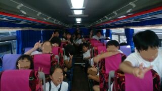 子どもたちは、バスの中で、みな元気いっぱいです。