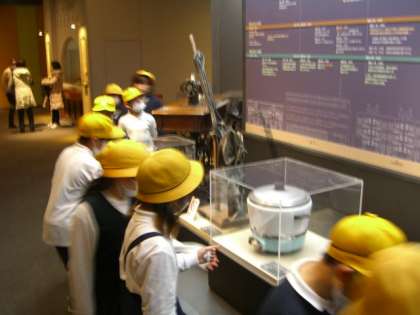 昔使っていたものの展示物コーナーでは、炊飯器やこたつなどに「これ、知ってる!見たことある!」と興味津々に見学していました。