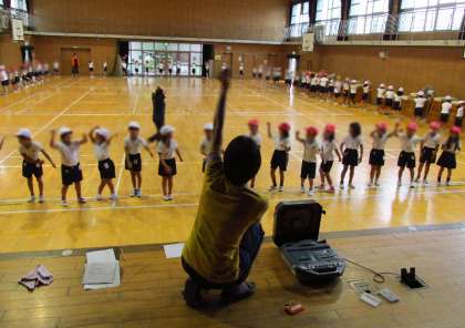 今日も雨が降りました。運動場での練習がなかなかできません。講堂では、2年生がダンスの練習をしていました。