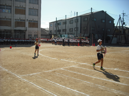 入場行進や校歌、ラジオ体操、応援合戦などの練習をしました。