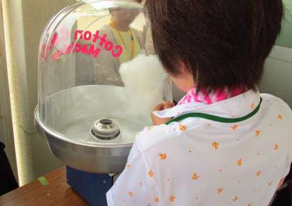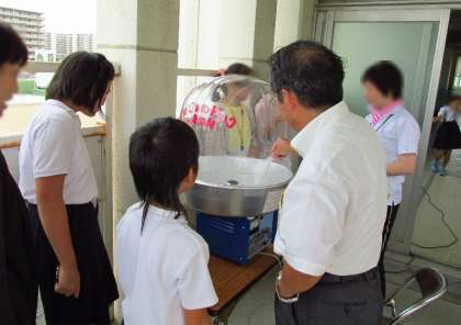 5月22日の学校日記でベルマークとわたがし器を交換したとお知らせしましたが、来たる10月のスマイリング・フェスティバルに向けて、PTA実行委員の方たちが土曜授業の後に試運転をしました。