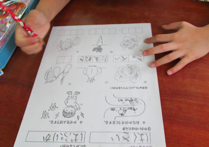 まず、自分の好きな野菜と苦手な野菜を発表し、野菜を食べると元気に過ごせることを学習しました。それから、給食に出てくる身近な野菜の名前を確認したり、色を塗ったりして、「野菜となかよしになる」ことの大切さを学びました。