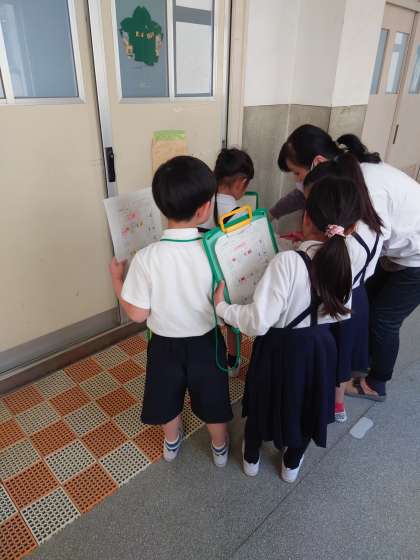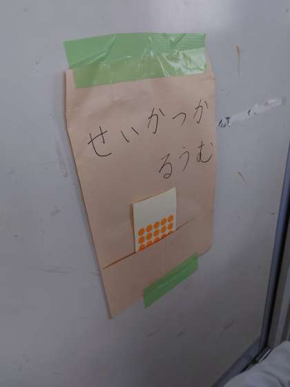 1年生は「学校たんけん」をしました。教室で班になり、まわる順番を話し合ってから、職員室や給食室、保健室等の場所を校内の地図を見ながら探し、シールを貼ります。行き方に迷ったりしながらも、みんなで協力し、学習を進めることができました。