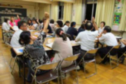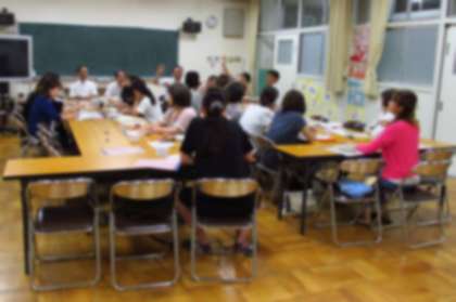 毎月1回ほどPTA役員さん、実行委員さんたちが夜に学校に集まっていただいて会議を開いています。(参加していただいてる方々、いつもご苦労様です。)