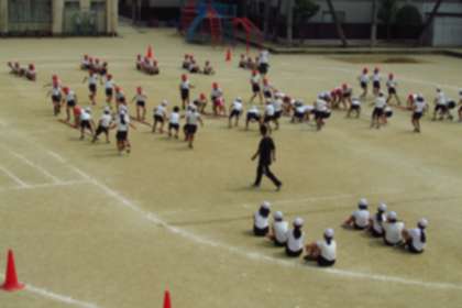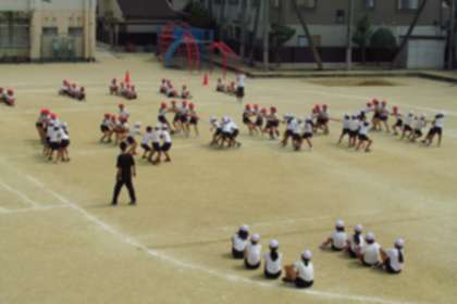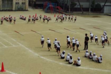 スタートの合図で、赤組、白組の中央にある長い棒に走っていきます。棒をつかんだら綱引きのように自分の陣地に引っ張っていきます。