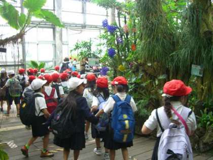 「咲くやこの花館」では珍しい植物を見て、「おもしろい形のサボテンや!」「バナナやマンゴーの木がある!」等と関心を持って見学していました。電車の中のマナーも守ることができ、とてもがんばっていました。