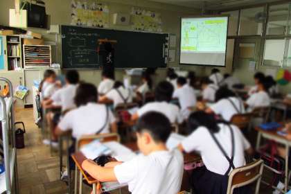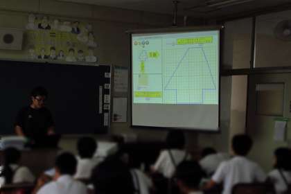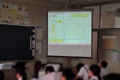6年生のある教室では、算数の授業でデジタル教材とパソコンを使って、スクリーンに大きく映しながら学習していました。