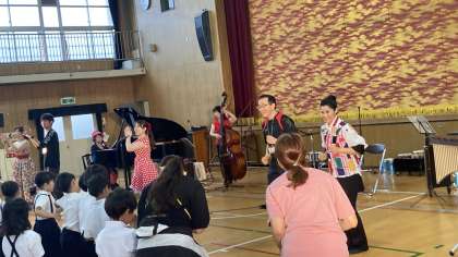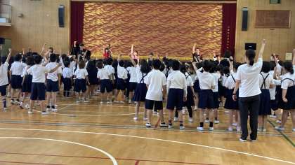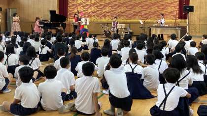 ボディーパーカッションや指揮の体験では、子どもたちの体が自然とリズミカルに動き、大いに盛り上がりました。