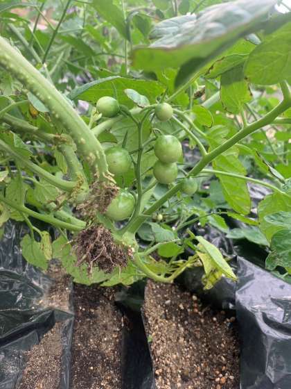 2年生は、ミニトマト、ナス、オクラ、さつまいもを育てています。とても立派なナスができました。子どもたちが一人ずつ育てているミニトマトも緑色の実が出来はじめました。これから赤くなっていくのが楽しみです。