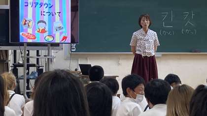 ソンセンニム(韓国朝鮮民族講師)にゲストティーチャーとして来校していただき、6年生にお話していただきました。