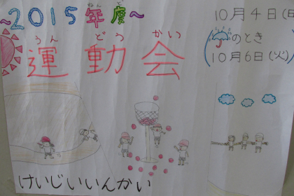 1日17時の時点での気象庁の週間天気予報では、4日の日曜日は晴時々曇となっていますので大丈夫そうですが…。(4日の日曜日に運動会が全部実施できなかった時は、6日の火曜日に行われます。)
