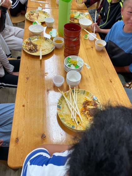 夕食もしっかり食べました。空っぽの水筒にもお茶を入れてもらいました。