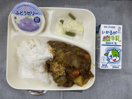 いつもの給食のカレーライスは、小麦粉・カレー粉・香辛料などから作られたカレールウの素を使って味つけしています。