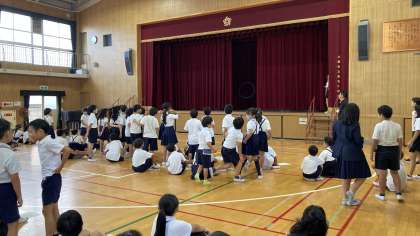 3年生と5年生のきょうだい学年が講堂にあつまり、児童集会を行いました。