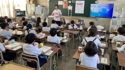 本日、学校歯科医の先生と教育委員会より派遣された歯科衛生士さんによる、歯みがき指導を受けました。