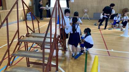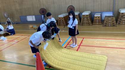 階段を上り下りするとき、布団の上げ下ろしをするときなどの大変さを体験するとともに、どういった声掛けやお手伝いをすればいいのかを考えました。