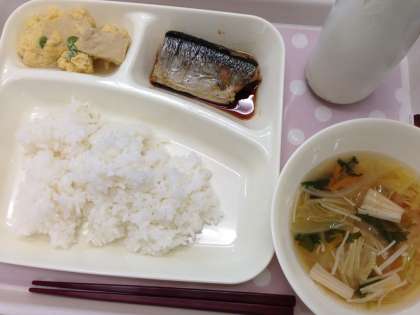 「さんまのさんしょう焼き、すまし汁、高野どうふの卵とじ、ごはん、牛乳」