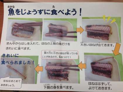 今日のさんまは骨があるので、各学級で食べ方を指導してくれました。