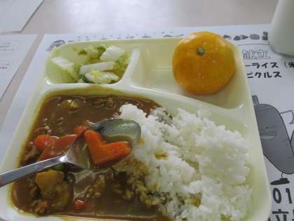 「ポークカレーライス、はくさいのピクルス、みかん、牛乳」です。