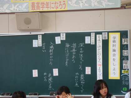 6年生は、国語の学習で学級討論会に取り組んでいます。
