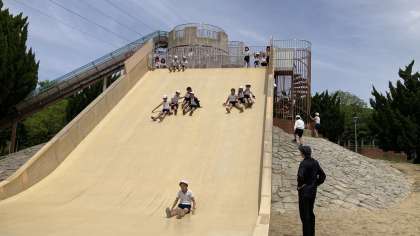 初めは、大きな滑り台に怖がっていた子たちも、だんだん慣れてきて、何度も何度も滑っていました。