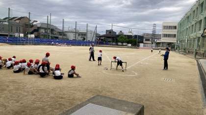 1組は、スポーツテストのソフトボール投げ、2組は鉄棒に取り組んでいました。