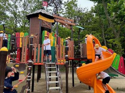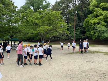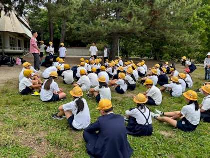 遠足で服部緑地公園へ行きました。オリエンテーリングでは班で協力しポイントをまわることができました。遠足実行委員がみんな遊びを計画し、ケイドロや大縄跳びをして楽しみました。疲れもある様子でしたが無事に帰校することができました。