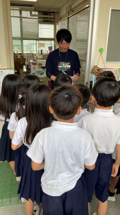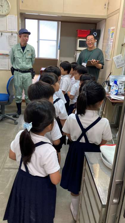 「学校ではたらく人」について調べる学習をしています。管理作業員さんや職員室の先生にお仕事の内容をインタビューしていました。