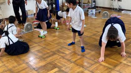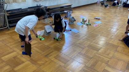 サーキュレーターの風を受けた車の動く距離を調べました。