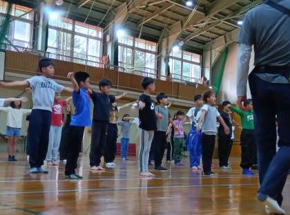 7時に体育館に集合し朝の集いとラジオ体操をしました。