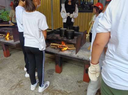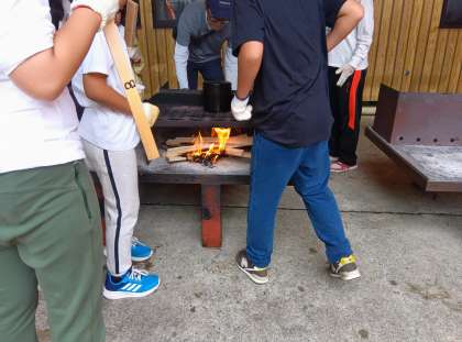 かまどグループは、火おこしをしています。