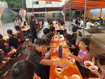 楽しい活動の後に美味しい食事。会話も弾みます。