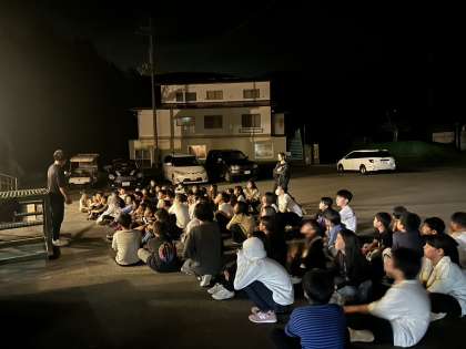 今夜の活動は星空観察です。乾先生から星や天体、星座の話を聞いています。